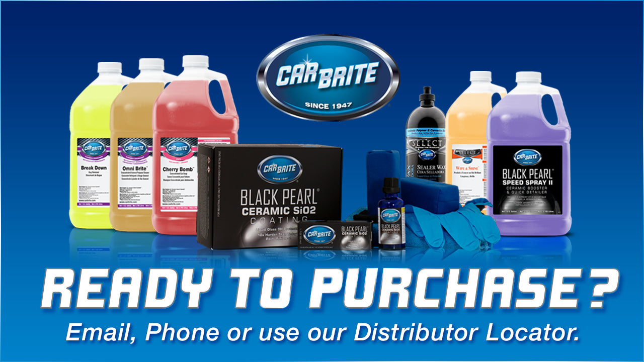 If you are interested in purchasing professional, premium detailing supplies from Car Brite, please take a few moments to create an account with us. Alternatively, you can reach us by phone (844) 696-4836 or by email info@carbrite.com. We will answer all of your questions and get you routed to a distributor nearest to your location.