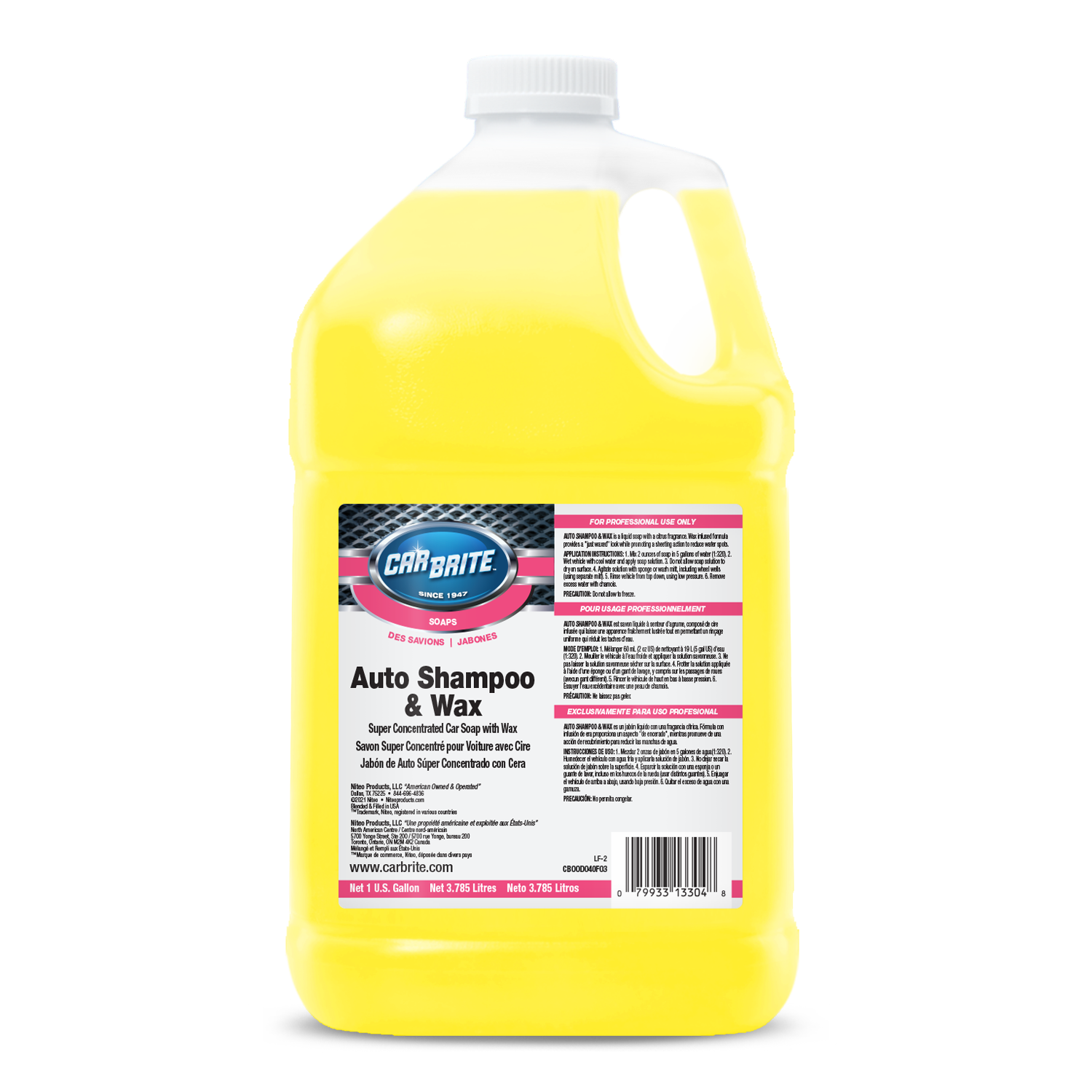 Ultra concentrated, high-foaming wash & wax shampoo with a citrus scent that quickly loosens road film and grime, then rinses clean while leaving behind a smooth, just-waxed gloss. Balanced lubricity and easy rinsing help reduce wash-induced marring, making it ideal for maintenance washes on coated or previously waxed vehicles.