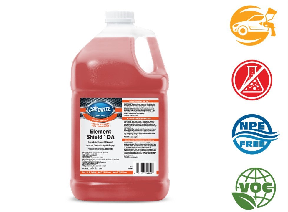 A concentrated, VOC compliant, exterior protectant that keeps painted, chrome, glass and rubber surfaces cleaner longer and enhances gloss. Drying agents reduce drying time and water spots while QUAT compounds bond to the vehicle surface creating a protective barrier against deposits and UV rays.